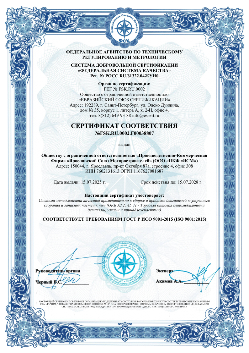 Система менеджмента качества применительно к сборке и продаже двигателей внутреннего сгорания и запасных частей к ним (ОКВЭД 2: 45.31 - Торговля оптовая автомобильными деталями, узлами и принадлежностями).